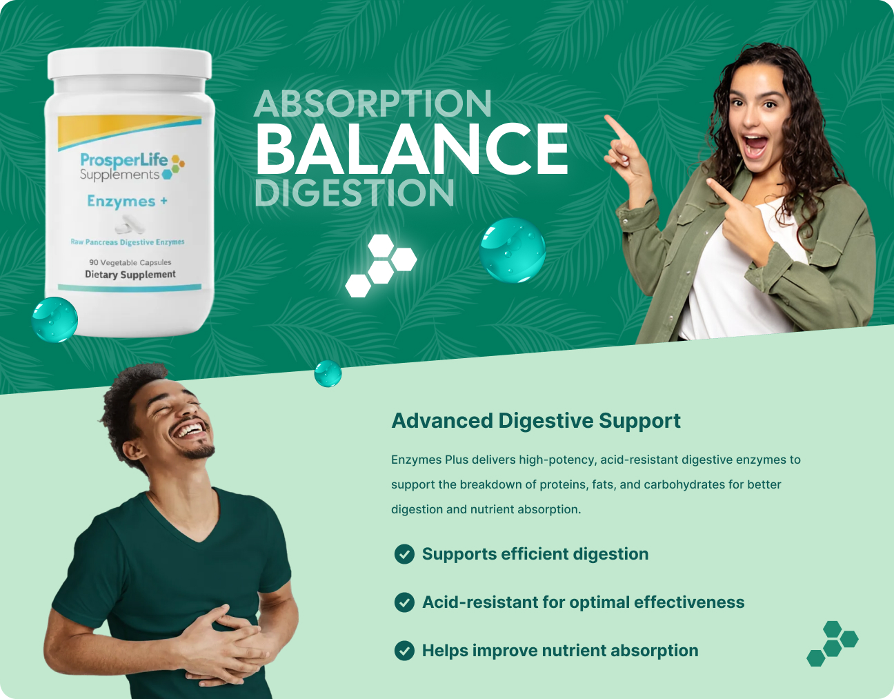 Elevate your digestive health with Enzymes Plus from ProsperLife Supplements! This acid-resistant digestive enzyme supplement is designed to aid the body's natural digestive function. It is a porcine-derived, raw pancreas concentrate with high enzymatic activity to help the body break down proteins, carbohydrates, and fats efficiently. At ProsperLife, we are dedicated to empowering your health and wellness journey with high-quality, scientifically-formulated supplements. Discover the transformation that optimal digestion can bring to your life! These statements have not been evaluated by the Food and Drug Administration. This supplement is not intended to diagnose, treat, cure, or prevent any disease.